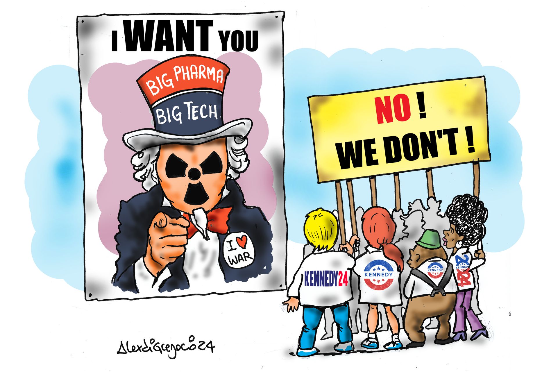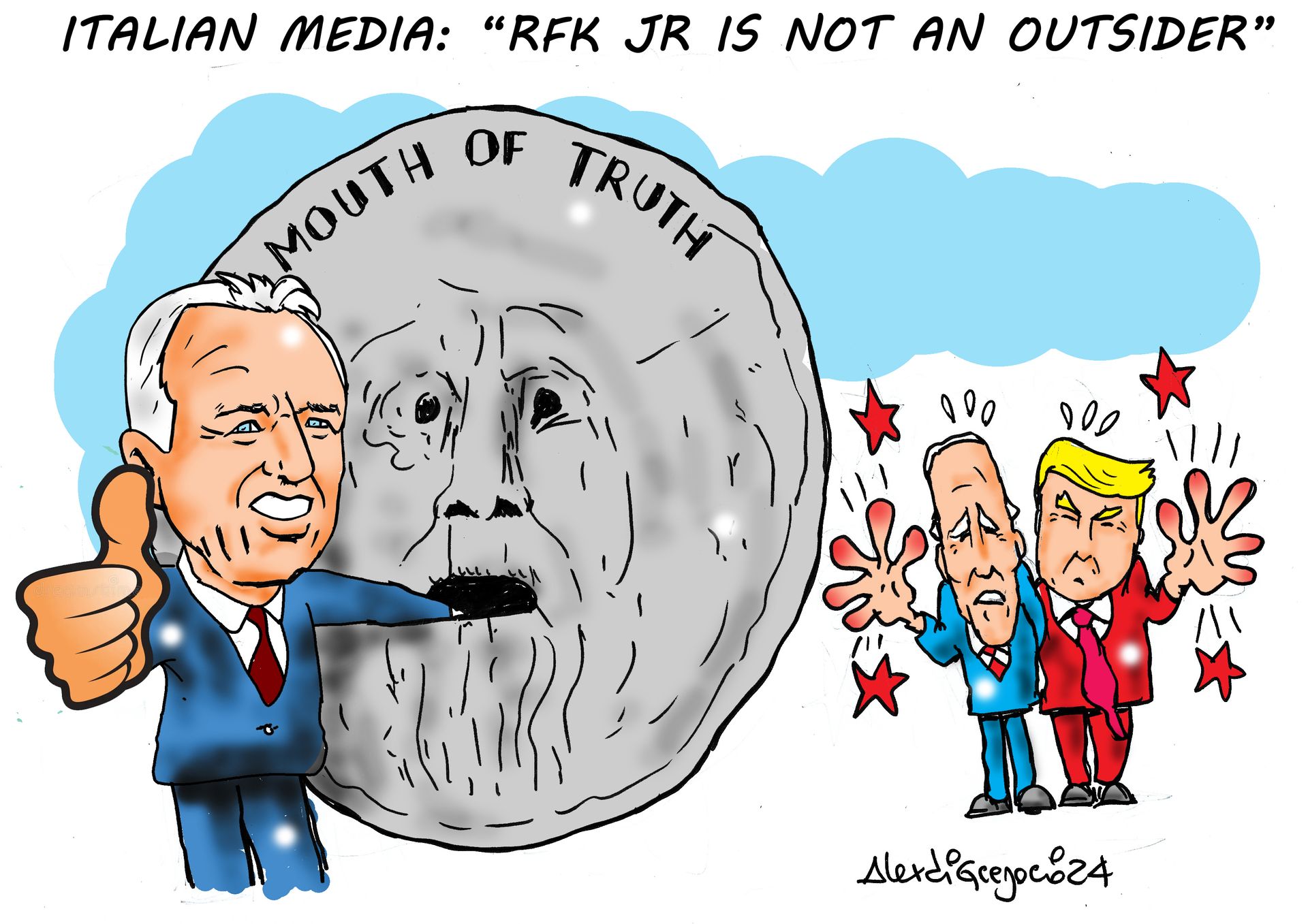 Alessandro Di Gregorio, known professionally as Alex Di Gregorio, was born June 20, 1962, in Parma but he grew up in Alessandria. He's an Italian editorial cartoonist and author. He started drawing at a precocious age. His first works are classmate portraits when he was six. After graduating in 1981, Alex made his artistic debut as cartoonist in local newspapers in Alessandria. He moved to Milan in 1994 to become cartoonist for Mediolanum and Standa, making storyboards for Economic TV shows, and cartoonist in Retequattro's TV show "Quadrante economico", created by Carlo Maria Lomartire. In 1998 he became cartoonist in the Italian TV Telemontecarlo, then La7 television show Crono-tempo di motori. Since 1997, he is cartoonist at christian-democratic newspaper "La Discussione". His cartoons appear in Italian newspaper titles ("L'Indipendente", "Liberal", "Con", "L'Ago & il Filo", "Il Secolo d'Italia") and international titles (“The Kennedy Beacon” - American Values 2024, the SuperPac for Robert F. Kennedy jr Presidential campaign) From 2008, is cartoonist and communications, graphic and project manager of author Magdi Cristiano Allam. Currently, Alex is cartoonist at christian-democratic newspaper "La Discussione"; "Coldiretti", the largest Italian Farmers Union; "Univerde"; "Anbi".He has published Pierre Salinger, le Superman de la Communication" edit by Pierre and Poppy Salinger Foundation (Avignon, France, 2007). He is a staunch supporter of animal rights and owns a dog called Teddy and two cats called Rory and Tigre.On October 19, 2014, Alex Di Gregorio won a "Balena Bianca" Award for editorial cartoon.
